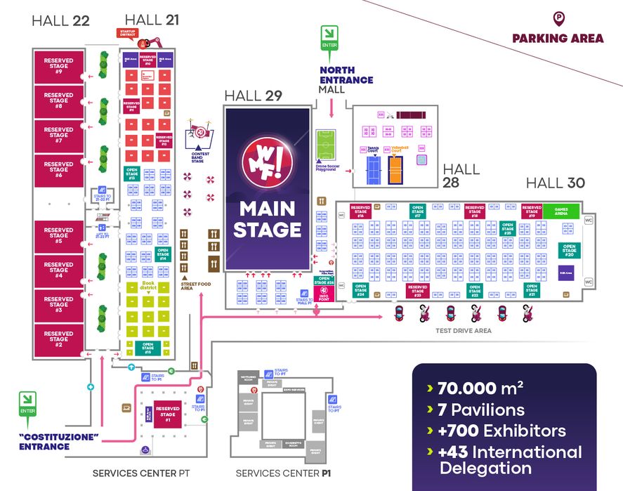 The Expo Area hosts thematic exhibition districts including those on Artificial Intelligence, Robotics, Startups, eSports, and Publishing, and welcomes exhibitors and entities from all over the world including tech market players, startups, institutional delegations, investment funds, companies offering cybersecurity services, web consulting, e-commerce, hosting, martech and marketing automation, IOT, VR, printing, HR and CMS, and much more: entities with which you can organize a rich agenda of business opportunities, with matching, B2B meetings, networking aperitifs, and much more. The last edition of WMF saw the participation of over 700 exhibitors and 73,000 attendees from 90 countries.